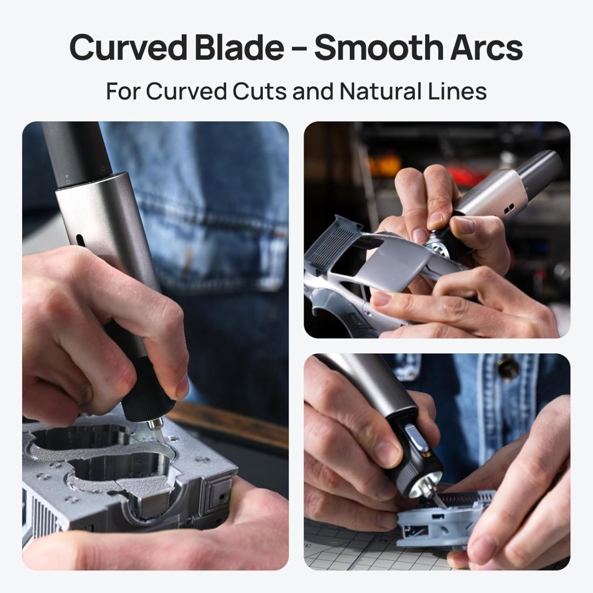 Designed for flowing, curved cuts, this SK5 carbon steel blade offers enhanced control and smoothness on contours and irregular shapes. Supplied with safety dispenser.