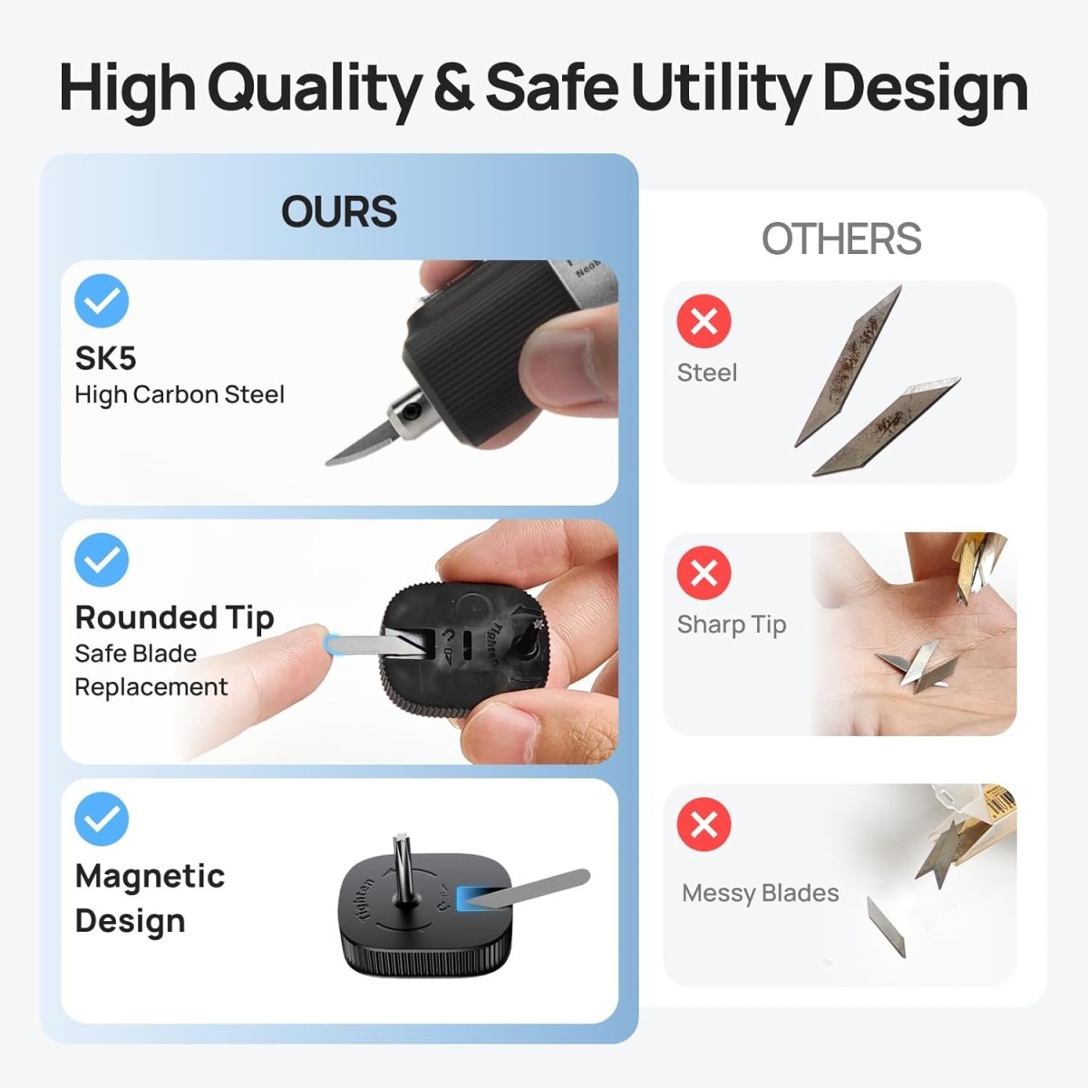• Magnetic surface for temporary blade holding