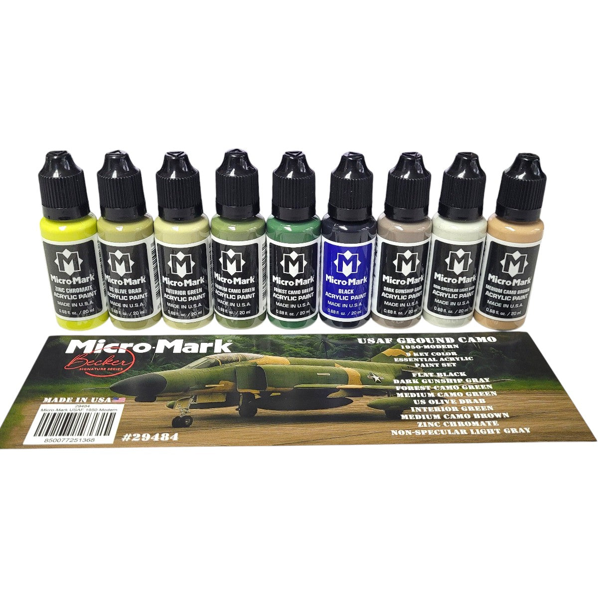 Micro-Mark USAF 1950–Modern Ground Camo Acrylic Paint Set, 9pc – Item #29484