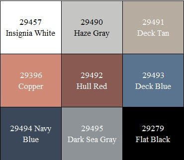 • Navy Blue & Deck Blue: Core WWII camouflage colors, part of Measure 21 and Measure 22 schemes on destroyers, cruisers, and carriers.