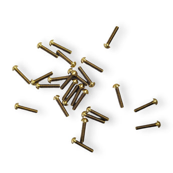 Miniature brass machine screws with round heads. 25 per package. Made in the USA.