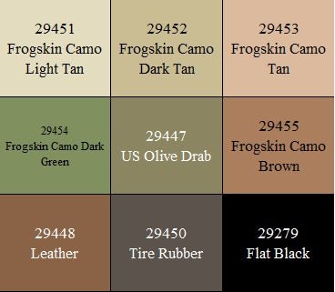 - Includes the complete palette for the distinctive frogskin reversible camouflage used by Marines in the Pacific.